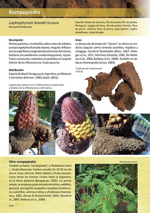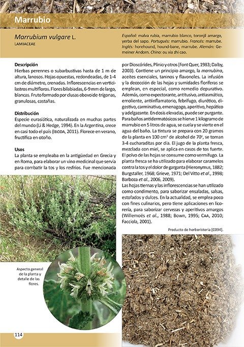 Este libro presenta información sobre 170 especies de plantas con aplicaciones medicinales de Argentina. Los contenidos corresponden a resultados obtenidos en estudios previos sobre etnobotánica urbana en el área de estudio. Se relevaron diversos sitios de expendio: herboristerías, farmacias, dietéticas y mercados. La finalidad de este texto es que el conocimiento de las características y propiedades de las plantas medicinales se difunda, y permita que las personas que las consumen amplíen sus propios conocimientos sobre las mismas, sus beneficios y posibles efectos perjudiciales, así como sus diferentes formas de empleo, de modo que puedan orientar sus posibilidades de elección.